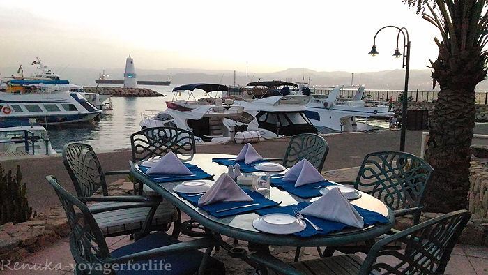 Also, we had the pleasure of digging in to the barbecued chicken and fish (along with regular Jordanian dishes – Salads, Hummus and Pita bread) while sailing. After our time on the yacht, we checked in at Movenpick Resort – my favourite stay in Jordan. My room had a fabulous view of the sea, which added to my thrill of being in Aqaba.