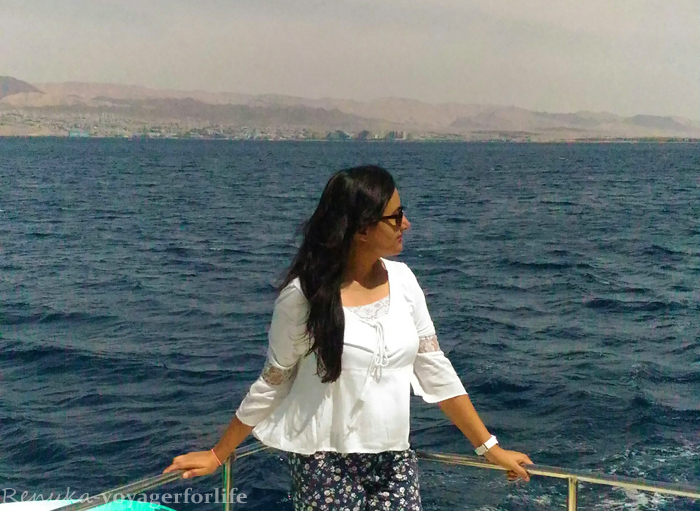 The moment you reach the shores of the Red Sea, you get to see two different countries across the sea – Israel on the right side and Egypt right in front. As you board a yacht to sail, the brown mountains touching the brink of the blue sea spellbind you. My fellow bloggers swam and snorkeled, while I chose to simply enjoy the breezes and the sublime beauty around me.