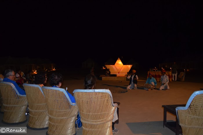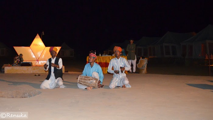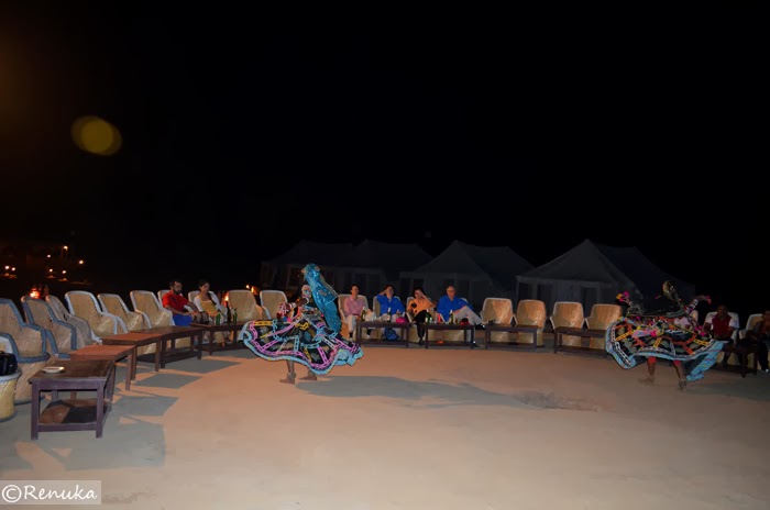 In my post Thar Desert – A Safari To Remember, I had narrated my camel safari experience in the desert. After the safari, I was escorted to a desert camping resort. We were given welcome drinks on arrival. The resort was well-equipped with all the amenities – comfortable tents with cots, mosquito nets and attached bathrooms.
